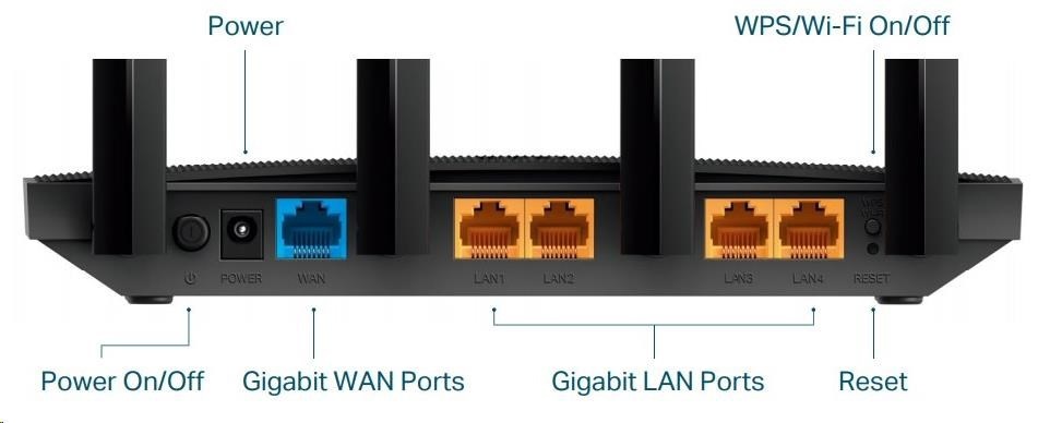 | Ethernetové porty | 1× Gigabit WAN port 4× Gigabit LAN porty |