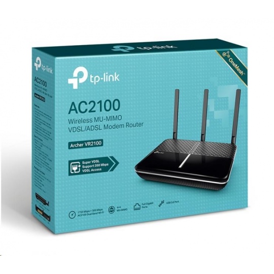TP-Link Archer VR2100 OneMesh WiFi5 VDSL2/ADSL router (AC2100, 2,4GHz/5GHz, 3xGbELAN,1xGbELAN/WAN,1xRJ11, 1xUSB3.0)