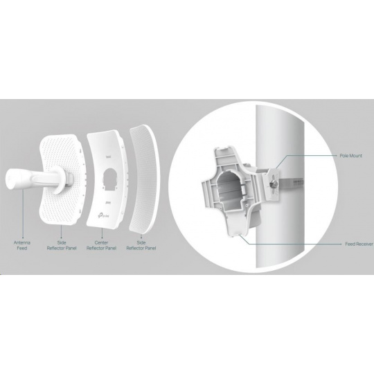 - Inovatívne diely so zámkom zabezpečujú rýchlu montáž a odolné konštrukčné riešenie, ktoré udrží CPE605 stabilný aj za silného vetra