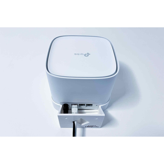 plastový držiak na stenu pre TP-Link DHX510, HX520 na stenu a to pomocou dvoch skrutiek. Držiak je vyrobený z PETG materiálu na 3D tlačiarni a má bielu farbu.