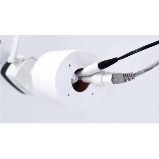 Plastový držiak s krytkou kábla je určený na upevnenie kamier VIGI C340 a C340-W značky TP-Link na stenu pomocou dvoch skrutiek. Držiak je vyrobený z materiálu PETG na 3D tlačiarni a má bielu farbu. a celkové rozmery sú 72 x 72 x 69 mm.
