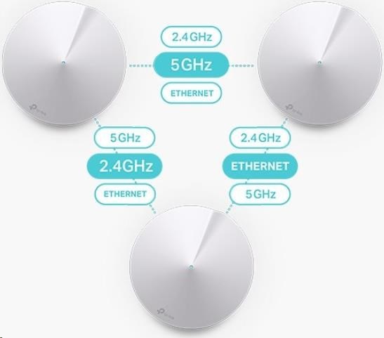 | WiFi Dosah | 3-5 izbové domy (3-balíček) TP-Link Mesh technológia Voliteľná Ethernetová spätná väzba spolupracuje na prepojení jednotiek Deco pre plynulé pokrytie 4× Antény (interné) Viaceré antény tvorí poľnopločný zosilňovač signálu na pokrytie väčších smerov a veľkých plôch Beamforming Sústreďuje bezdrôtovú signálovú silu smerom k klientom, čím rozširuje WiFi dosah |