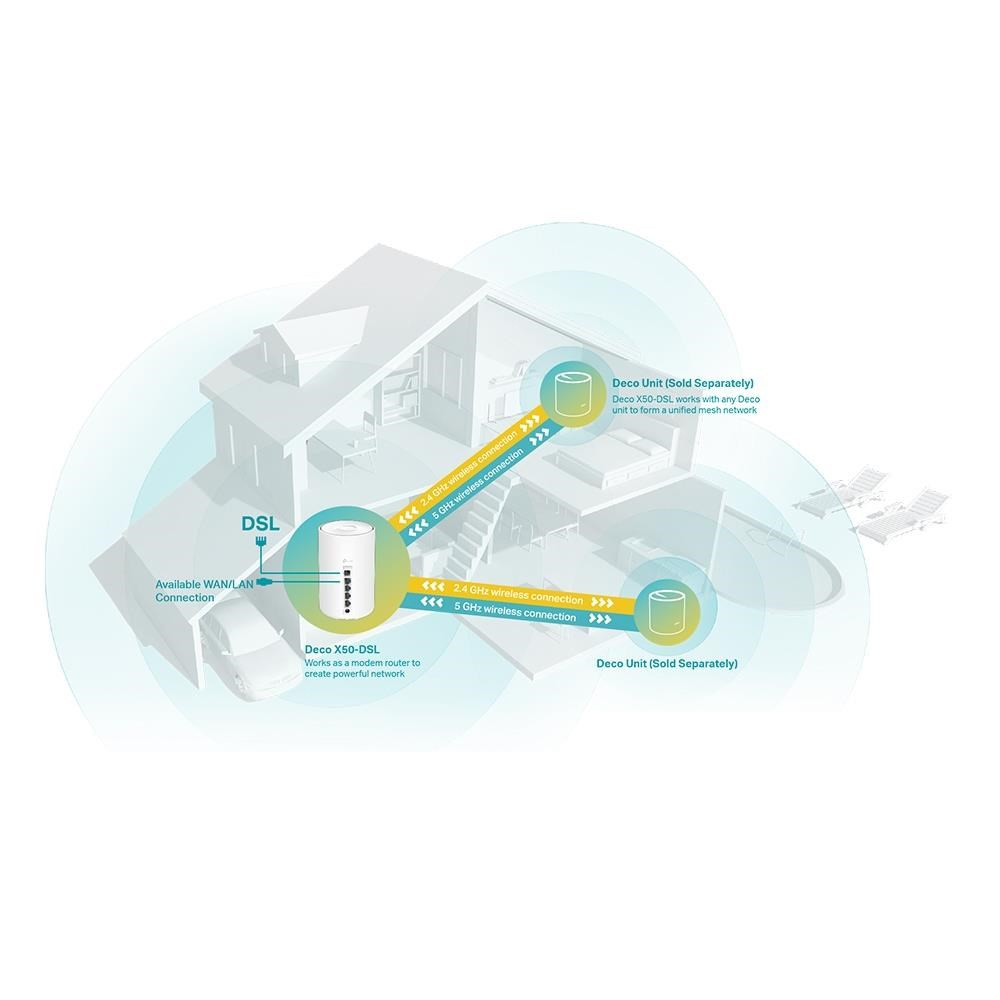 TP-Link Deco X50-DSL WiFi6 Mesh (AX3000,2,4GHz/5GHz,4xGbELAN/WAN,1xDSL Port (VDSL2/ADSL2+/ADSL2/ADSL)