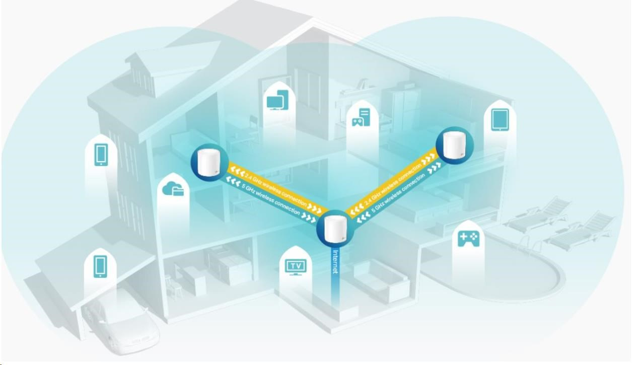 - Jedna zjednotená sieť - Viaceré jednotky tvoria domácu sieť, ktorá automaticky vyberie najlepšie spojenie, keď sa pohybujete po domácnosti.