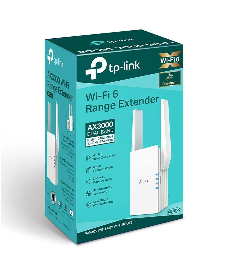 TP-Link RE705X OneMesh/EasyMesh WiFi6 Extender/Repeater (AX3000,2,4GHz/5GHz,1xGbELAN)