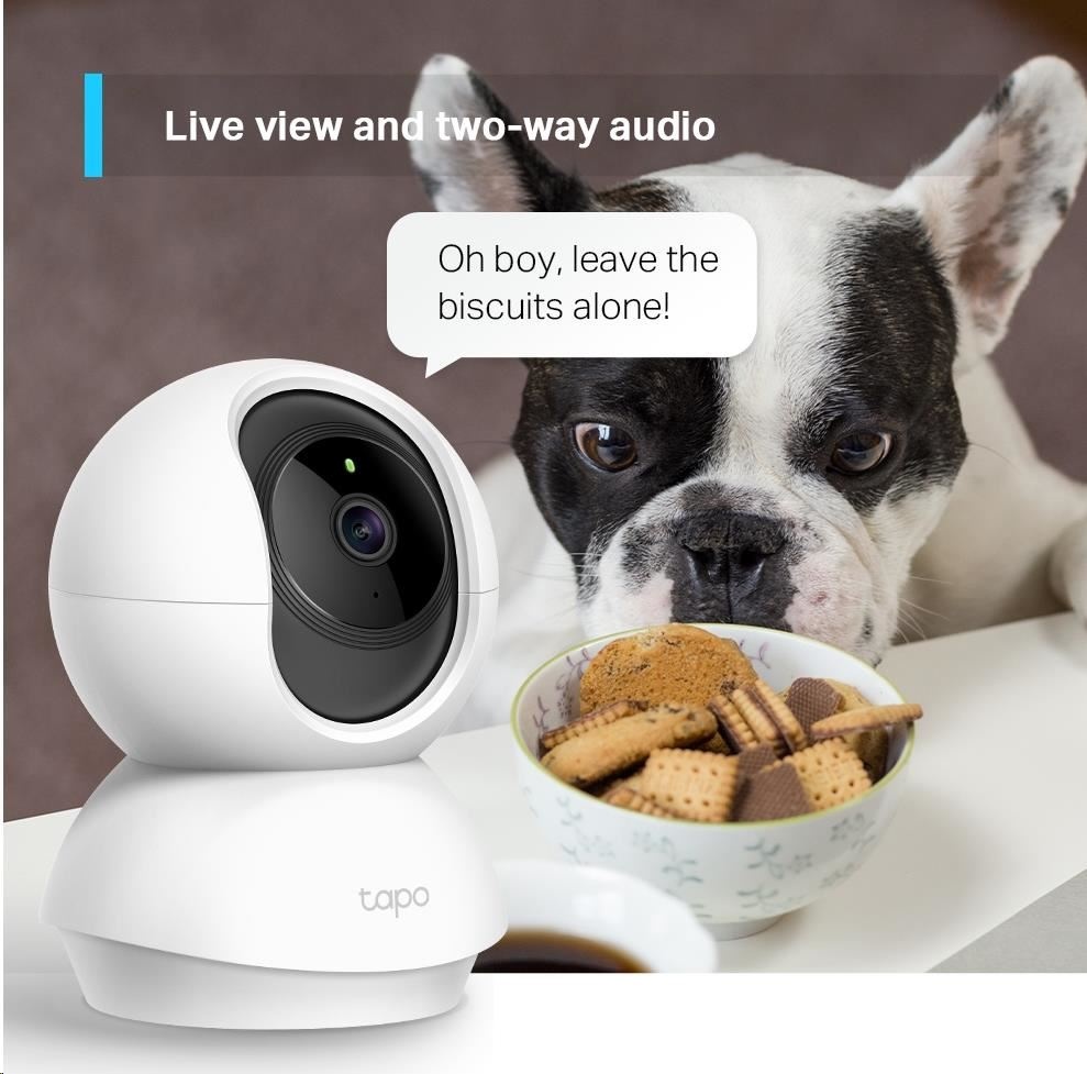 | Obsah balenia | Tapo Pan/Tilt Home Security Wi-Fi kamera Napájací adaptér Rýchly štartovací návod Montážne skrutky Montážna doska Základňa kamery |