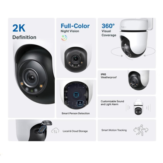 - Lokálne a cloudové úložisko: Ukladajte zaznamenané videá na microSD kartu (až 512 GB)† alebo pomocou cloudových služieb Tapo Care**.