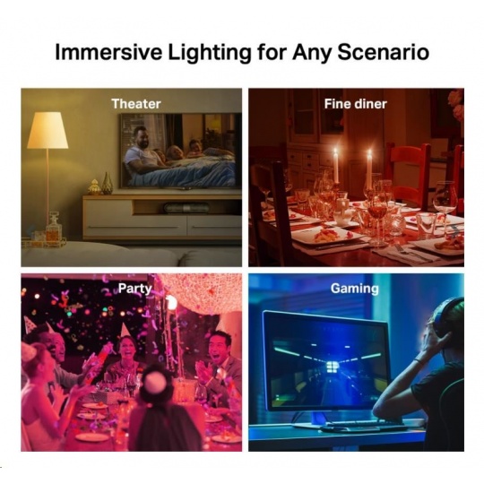 Jednoducho navrhujte scenáre pre svoju každodennú rutinu alebo aktivity prispôsobením jasu, teploty (2 500–6 500 K) a farieb - s výberom 16 000 000 odtieňov.