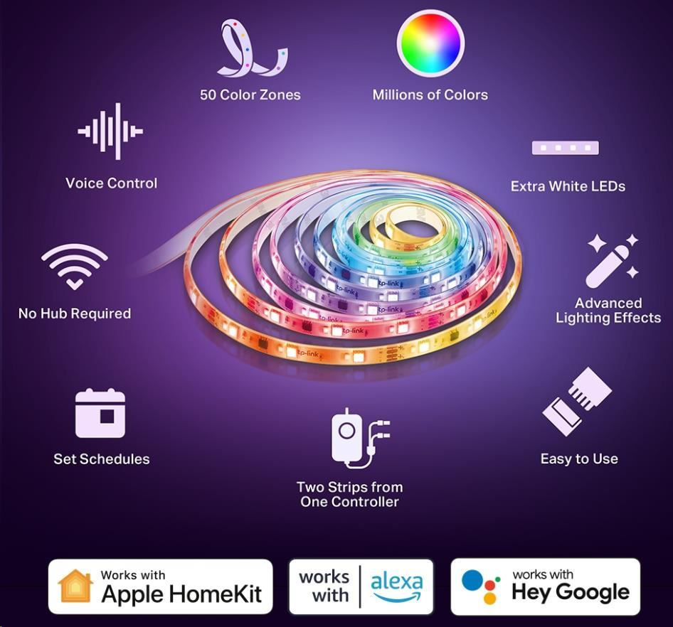 - Podpora Apple HomeKit – ovládajte svetelný pás pomocou Siri s funkciou Apple HomeKit.