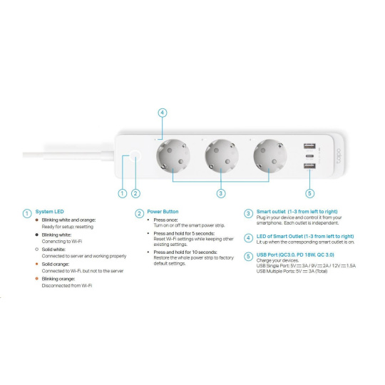 | Obsah balenia | Smart Wi-Fi Power Strip Tapo P300 Rýchly sprievodca začatím |