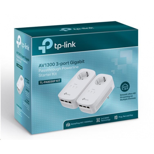 .TP-Link TL-PA8030PKIT průchozí powerline set (AV1300,3xGbE, HomePlug AV2)