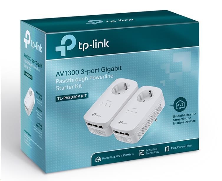 TP-Link TL-PA8030PKIT průchozí powerline set (AV1300,3xGbE, HomePlug AV2)