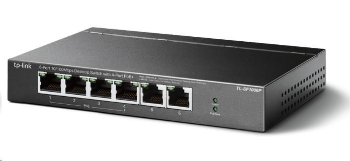 TP-Link switch TL-SF1006P (6x100Mb/s, 4xPoE+, 67W, fanless)