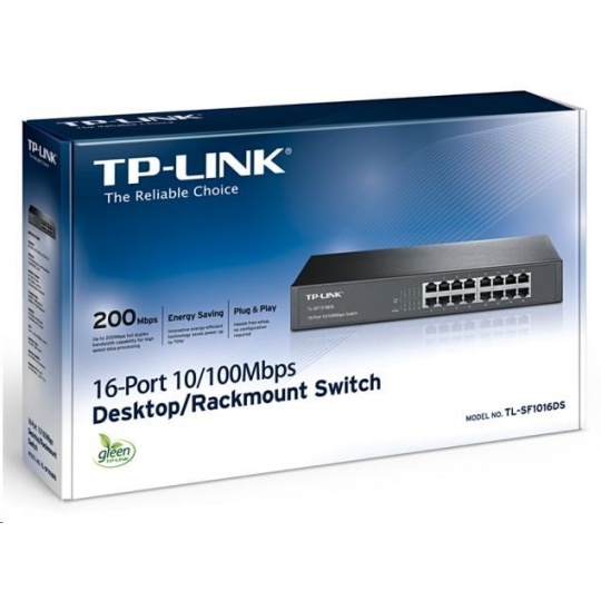 Switch TL-SF1016DS Fast Ethernet predstavuje výkonnú, cenovo dostupnú, ľahko použiteľnú, bezproblémovú a štandardnú možnosť upgrade staršej siete na sieť s rýchlosťou 1 000 Mbit/s. Všetkých 16 portov podporuje funkciu Auto MDI/MDIX, vďaka čomu sa nemusíte starať o príslušný typ kábla – stačí zapojiť a používať. Navyše s inovativnou technológiou úspory energie dokáže zariadenie TL-SF1016DS znížiť spotrebu energie až o 25 %; 80 % obalového materiálu je možné recyklovať. To všetko z týchto zariadení robí ekologické riešenie pre vašu firemnú sieť.
