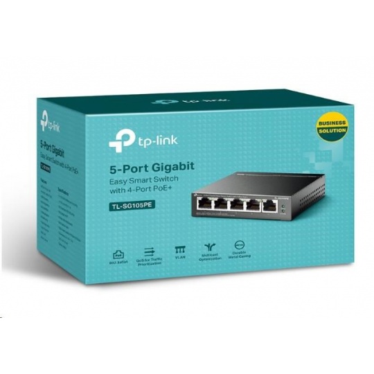 TP-Link Easy Smart switch TL-SG105PE (5xGbE, 4xPoE+, 65W, fanless)
