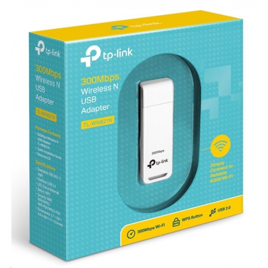 Bezdrôtový USB adaptér TL-WN821N Wireless N umožňuje pripojenie počítača alebo prenosného počítača k bezdrôtovej sieti a k vysokorýchlostnému internetu. Zariadenie vyhovuje štandardu IEEE 802.11n a poskytuje rýchlosť bezdrôtového prenosu až 300 Mbit/s, ktorá je vhodná na hranie online hier alebo vysielanie dátového toku HD videa.