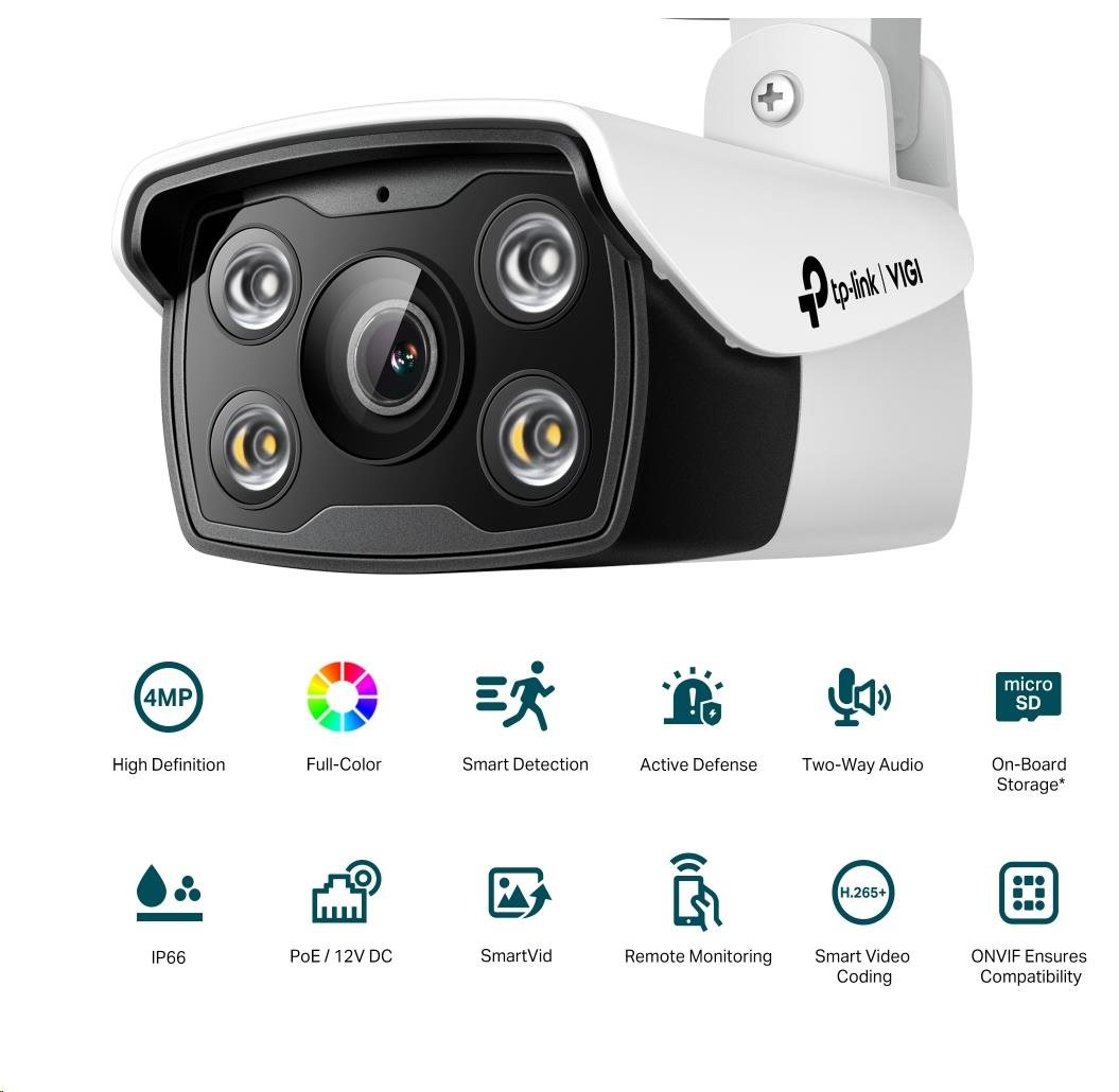TP-Link VIGI C340(4mm), 4MP, Bullet, IR 30m, Micro SD card