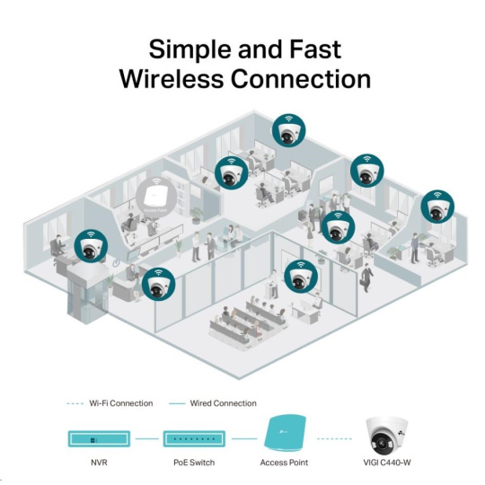• Bezdrôtové pripojenie: Jednoduché a rýchle nasadenie na miesta pokryté Wi-Fi signálom.