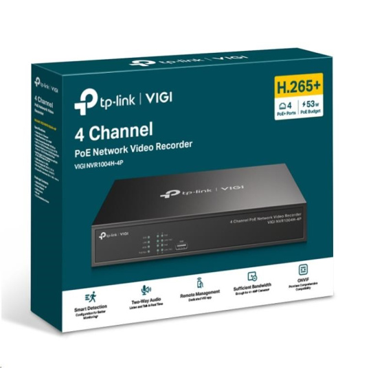 TP-Link VIGI NVR1004H-4P-2TB, videorekordér, 4 channels, 4xPoE, 1xSATA, 1x100Mb/s LAN, 2xUSB2.0, 1xHDMI,1xVGA
