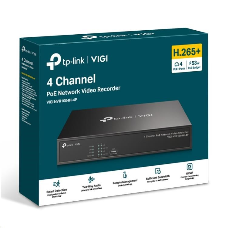 TP-Link VIGI NVR1004H-4P-2TB, videorekordér, 4 channels, 4xPoE, 1xSATA, 1x100Mb/s LAN, 2xUSB2.0, 1xHDMI,1xVGA