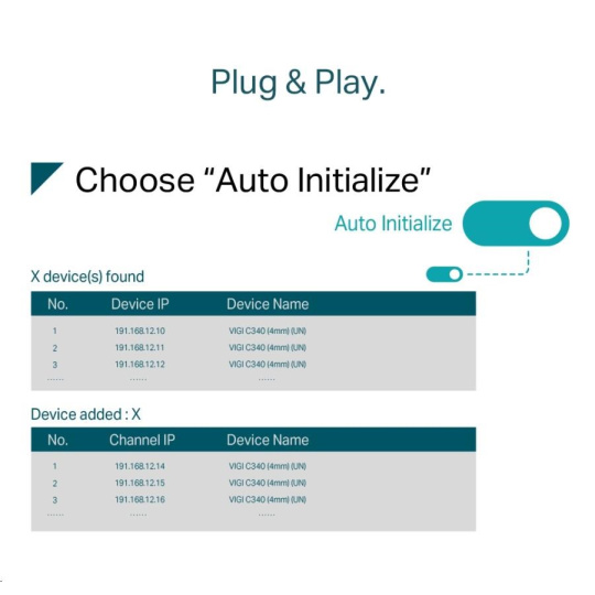 - Plug & Play - Umožňuje automatické pridanie nových a nepoužitých IP kamier VIGI do nového NVR a okamžitú aktiváciu, takže inštalácia je rýchlejšia než kedykoľvek predtým.