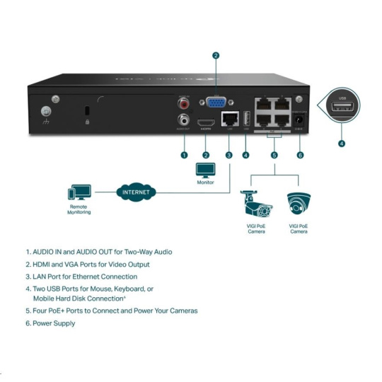 TP-Link VIGI NVR1004H-4P, videorekordér, 4 channels, 4xPoE, 1xSATA, 1x100Mb/s LAN, 2xUSB2.0, 1xHDMI,1xVGA