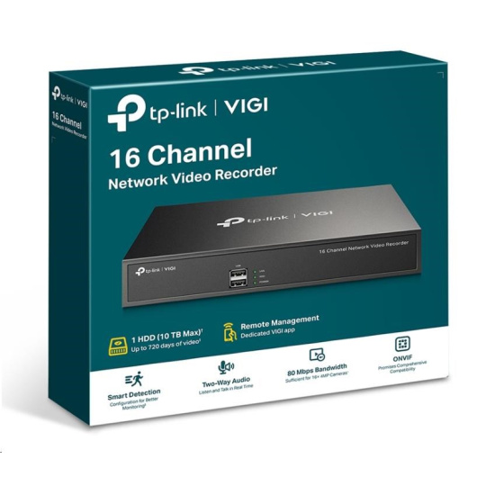TP-Link VIGI NVR1016H, videorekordér, 16 channels, 1x100Mb/s LAN, 1xVGA,2xUSB2.0,1xHDMI