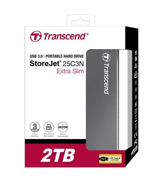 Externý pevný disk TRANSCEND 2,5" USB 3.1 StoreJet 25C3N, 2 TB, Ultra Slim