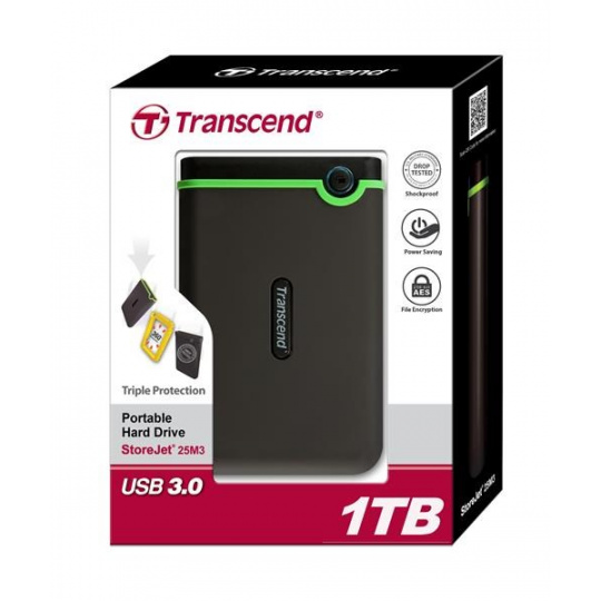 Externý pevný disk TRANSCEND 2,5" USB 3.1 StoreJet 25M3S, 1 TB, čierna (SATA, gumené puzdro, proti nárazom)