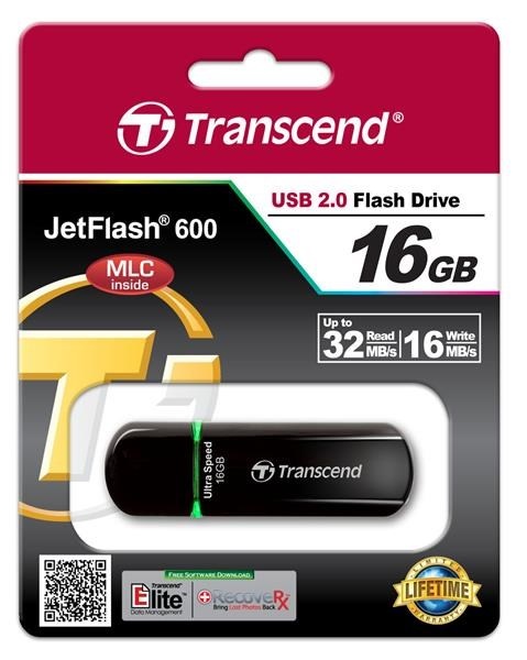 TRANSCEND Flash disk 16GB JetFlash®600, USB 2.0 (R:32/W:16 MB/s) čierna/zelená