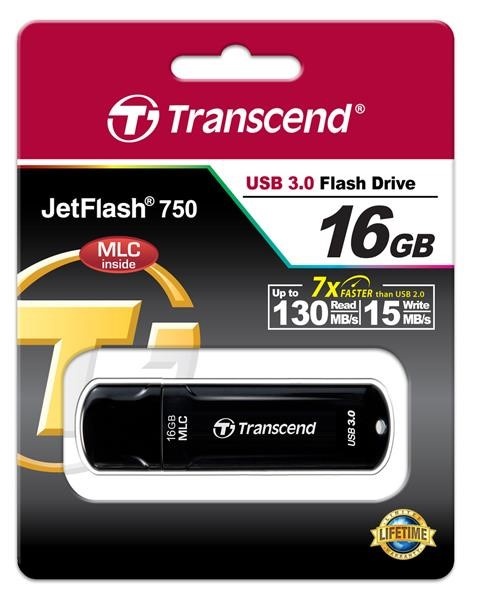 TRANSCEND Flash disk 16GB JetFlash®750K, USB 3.0, čierna