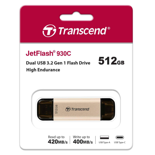Flash disk JetFlash 930C od spoločnosti Transcend je vybavený dvojitým konektorom, ktorý podporuje zariadenia USB typu A a typu C. S rozhraním USB 3.2 Gen 1 a zabudovanou pamäťou 3D NAND flash dosahuje rýchlosť až 420 MB/s. Vysoká kapacita až 512 GB vytvára dostatočný úložný priestor pre multimediálne súbory a herné súbory. Ak hľadáte prenosné a štýlové úložné zariadenie na hranie hier, JetFlash 930C od spoločnosti Transcend je to pravé!
