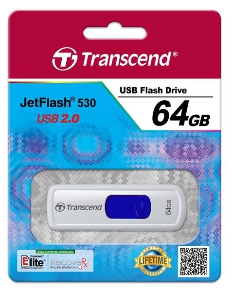 TRANSCEND Flash disk 64GB JetFlash®530, USB 2.0 (R:16/W:6 MB/s) biela/modrá kráľovská