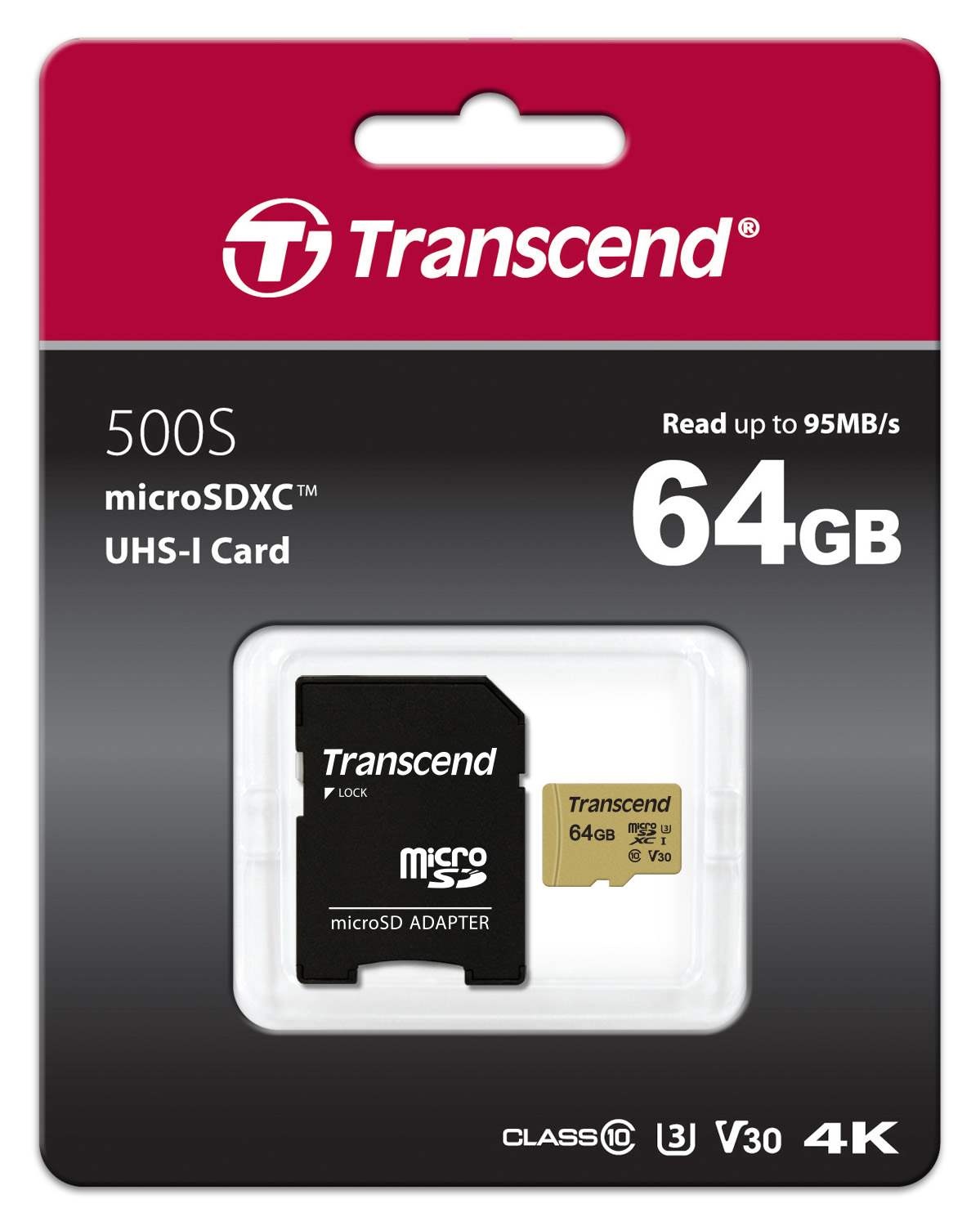 Pamäťové karty microSDXC/SDHC 500S od spoločnosti Transcend spĺňajú štandardy UHS Speed Class 3 (U3) a UHS Video Speed Class 30 (V30) pre videozáznamy v rozlíšení 4K Ultra HD s rýchlosťou čítania/zápisu až 95 MB/s a 60 MB/s.