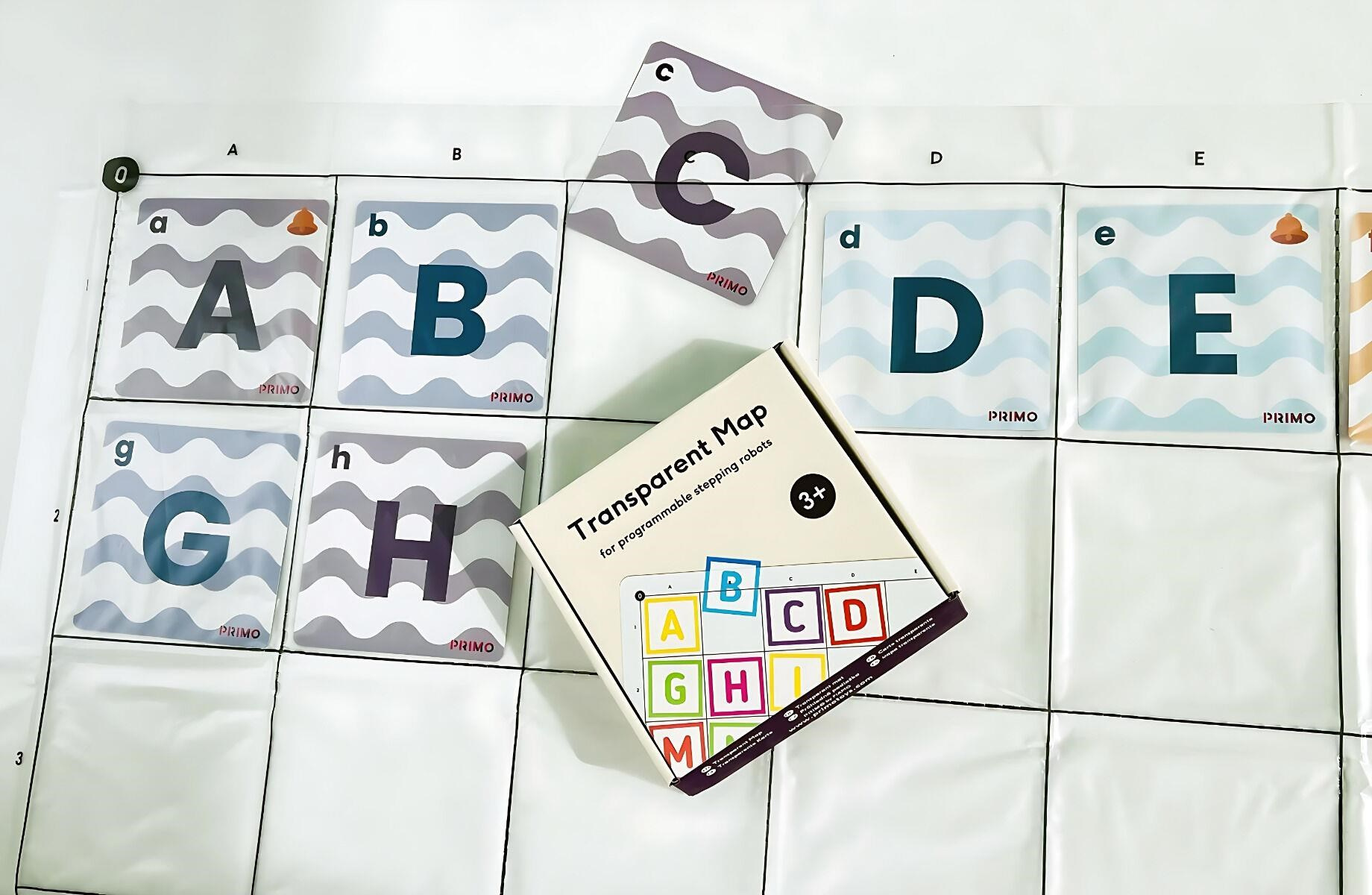 Transparentná podložka pre krokové roboty (Cubetto, Bee-Bot & Blue-Bot a ďalšie) s kapsami, do ktorých je možné vkladať kartičky s rôznymi témami. Učitelia alebo deti si tak môžu vymýšľať vlastné príbehy a úlohy, ktoré budú zodpovedať ich potrebám a znalostiam.