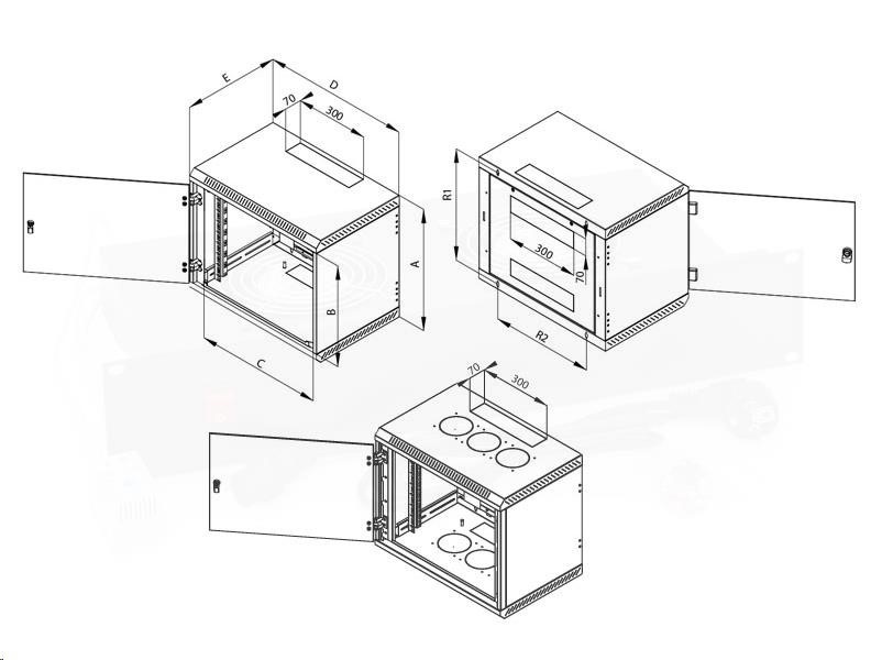 19" jednodielny rack TRITON 18U/400 mm, 6 otvorov pre ventilátory