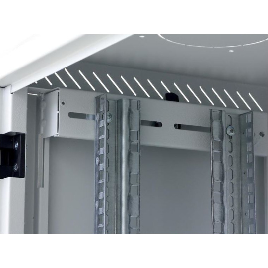 Dva páry 19“ vertikálnych lišt sú plynulo nastaviteľné v ľubovoľnej hĺbke rozvádzača. To uľahčuje montáž zariadení aj organizáciu prepojovacích káblov.