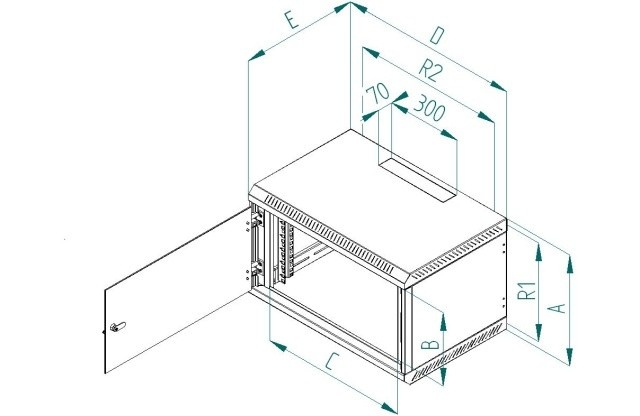 19" jednodielna skriňa Triton 6U/500 mm, celosklenené dvere..