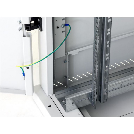 (platí pre šírku stojana 800 mm). Systém umožňuje inštaláciu posuvných vertikálnych koľajníc v rozpätiach 19", 21" a 23", presne podľa požiadaviek inštalovaného zariadenia.