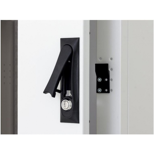 Vyrábame vlastné úchyty pre regálové skrine. Výmenou plastového modulu (nie je súčasťou dodávky) si môžete vybrať klasickú alebo poloválcovú vložku zámku. Patent: PUV 2013-27443.