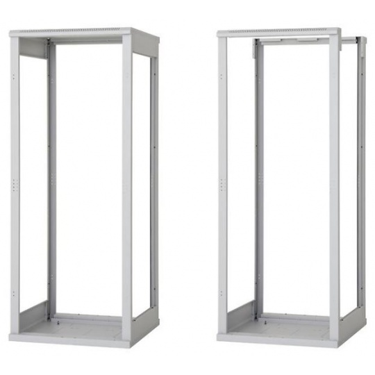 (platí pre šírku stojana 800 mm). Systém umožňuje inštaláciu posuvných vertikálnych koľajníc v rozpätiach 19", 21" a 23", presne podľa požiadaviek inštalovaného zariadenia.