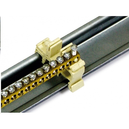 Uzemňovací modul na DIN lište na montáž na 19" vertikálne zariadenia, 36 prípojných bodov do max. prierez 10 mm2, jeden napájací bod do max. prierez 25 mm2..
