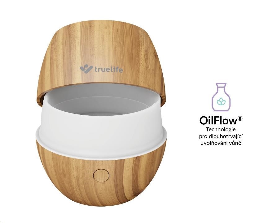 Chcete si doma navodiť príjemnú atmosféru k jóge, či meditácii alebo len príjemne relaxovať? S aróma difuzérom Truelife si môžete naordinovať aromaterapiu stlačením jedného tlačidla. Stačí do nádržky s vodou pridať pár kvapiek vášho obľúbeného esenciálneho oleja a OilFlow® technológia sa postará o zbytok. Difuzér eliminuje okolité pachy a prevonia vzduch v miestnosti vašou obľúbenou vôňou. Môžete ho používať aj ako zvlhčovač vzduchu. Funguje na princípe ultrazvuku, vodu v nádrži mení na jemnú paru, ktorá sa miesi so vzduchom v miestnosti a takmer okamžite ho zvlhčuje na optimálnu hodnotu.