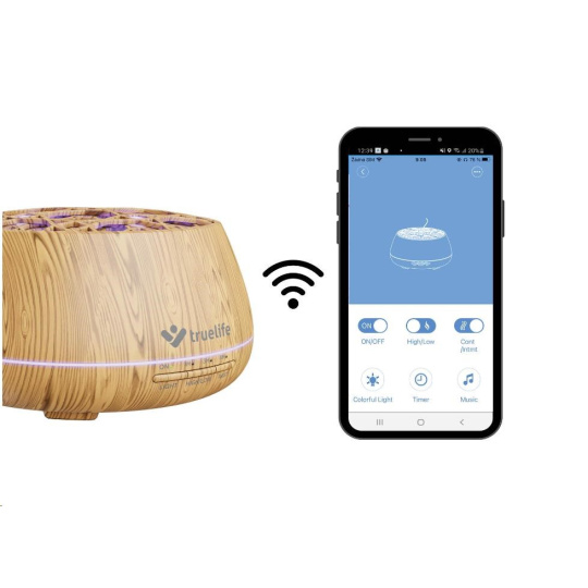 Difuzér možno pripojiť na Wi-Fi sieť a ovládať prostredníctvom aplikácii TrueLife Smart.