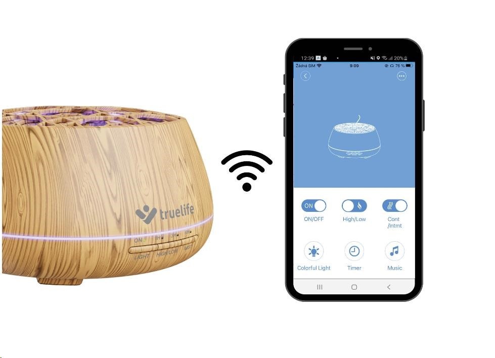 Difuzér možno pripojiť na Wi-Fi sieť a ovládať prostredníctvom aplikácii TrueLife Smart.