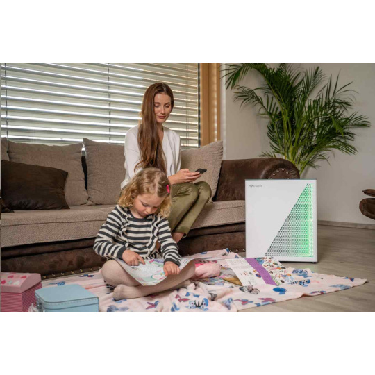 Čistička vzduchu TrueLife vyčistí až 310 m3 vzduchu za hodinu. Je vhodná do miestnosti o veľkosti 35-40 m2, môžete ju bez obáv prenášať. Čistička celkovo zlepšuje kvalitu vzduchu, ničí víry, baktérie a ďalšie nečistoty a môže tak významne pomôcť alergikom alebo astmatikom. Čistička je vybavená farebnými indikátormi kvality vzduchu, funkciou automatickej detekcie nečistôt a automatickým čistením. Ak bývate na mieste, kde sa často práši, poteší vás prítomnosť prachového senzora. 7-násobná filtračná sústava v podobe predfiltra, anti-bakteriálneho filtra, HEPA filtra, uhlíkového filtra, katalytického filtra, UV svetla a ionizácie zachytí až 99,9 % peľu a prachu a vyčistí 93,5 % výparných organických látok. Zároveň zachytáva aj víry a koronavírusy.