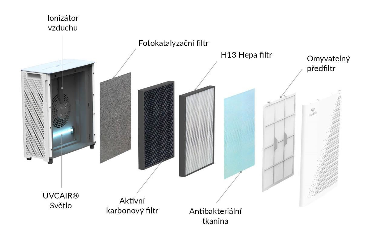 Nebojte sa riešiť, ktorý filter je práve potrebné vymeniť. Čistička TrueLife AIR Purifier P7 WiFi má všetky filtre zabudované do jedného.