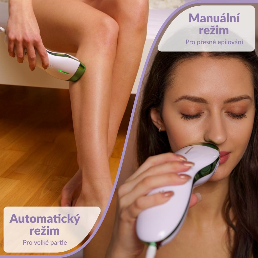 Epilátor TrueLife BELLE IPL EB3 ponúka dva režimy. Manuálny režim jednotlivých zábleskov je vhodný k epilácii malých a ťažko dostupných oblastí, ako sú tvár, podpazušie, oblasť bikín alebo členky. S automatickým režimom rýchlo a pohodlne ošetríte väčšie oblasti, napríklad nohy. Akonáhle sa prístroj dotkne epilovanej oblasti, jednoducho podržíte tlačidlo ovládania po dobu 3 sekúnd, epilátor sa prepne do automatického režimu, kedy pri plynulom pohybe po pokožke bude neustále vydávať záblesky.