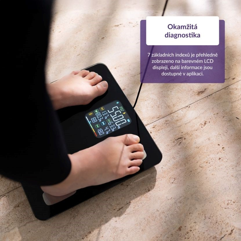 Prehľadný LCD displej ukazuje okamžite 7 telesných indexov vrátane hmotnosti.