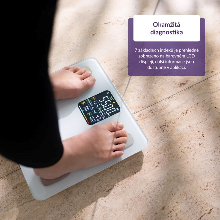 Prehľadný LCD displej ukazuje okamžite 7 telových indexov vrátane hmotnosti.
